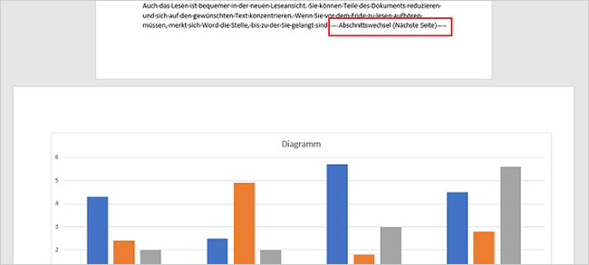 Wenn Sie lieber sichtbar und kontrolliert Abschnitte einfügen, nutzen Sie Abschnittsumbrüche manuell: