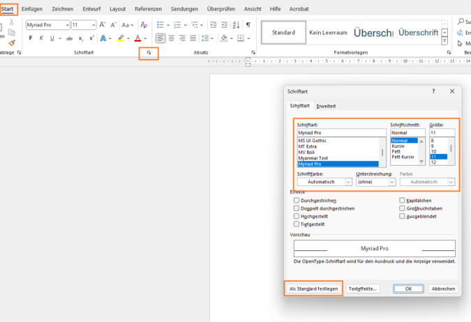 Schritt-für-Schritt: Schriftart und -größe als Standard setzen
