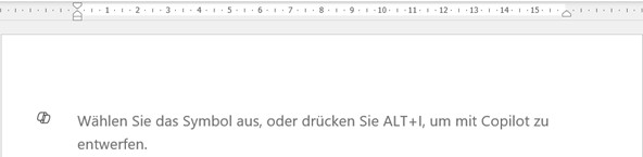 Sobald Sie Word öffnen, sehen Sie im leeren Dokument Hinweise und das Copilot‑Symbol. Das ist der Startpunkt für Ihre Prompts und Anfragen.